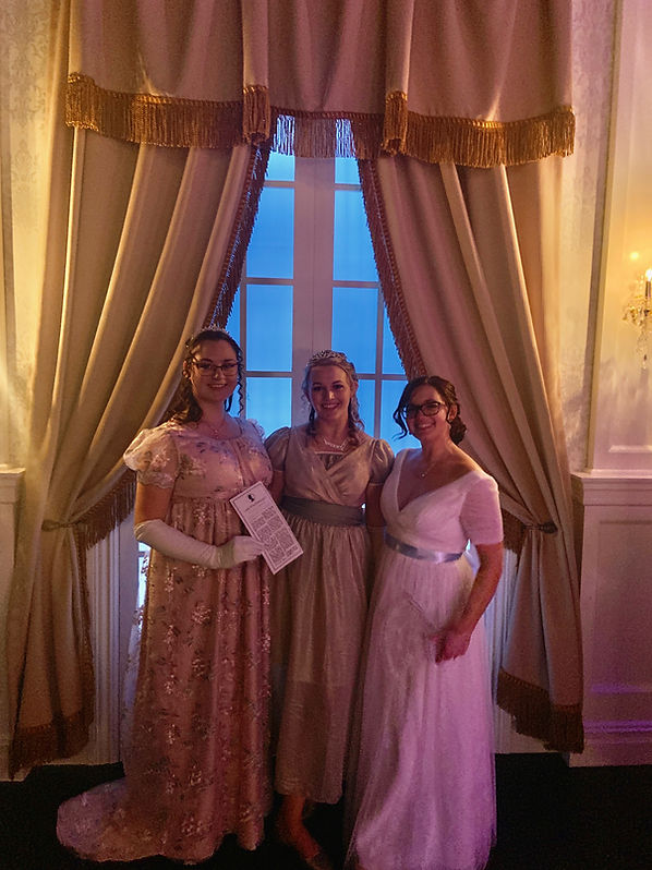 The evening concluded with dancing to a few modern songs to celebrate. All were sad to depart, but all good things must come to an end. Our efforts to return to the previous reception room were thwarted, as the queen hosts two balls per night and the room must be made ready for the next group of attendees. Take advantage of each room while you can, for you may not return once you have left! As we made our exit, the duke once again made his way to our party, and bowed farewell to my sister. It was the perfect close to the evening, as now we had all had an opportunity to interact with his grace.